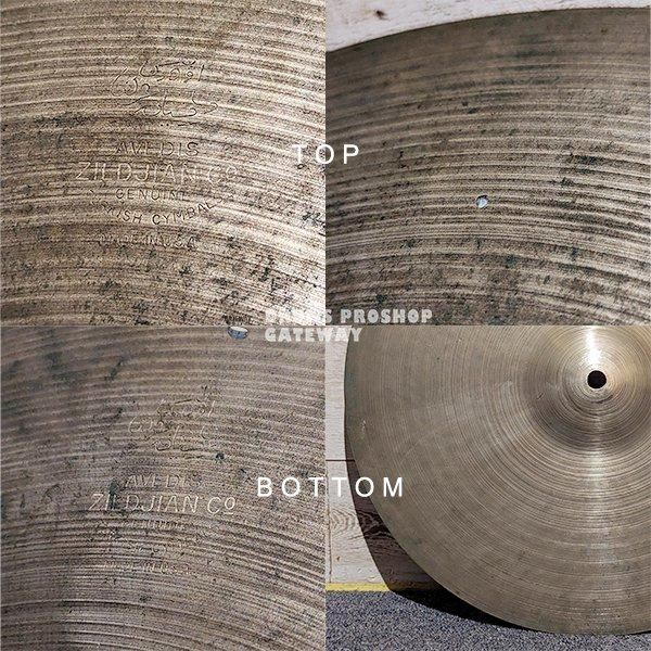 オリジナルペアかどうかは定かではありませんが、とても薄いJAZZハイハット! ちょっとハンドハンマーも入っているような時代だと思われますので、トルコ系シンバルとも相性が良さそうです。 もう少し厚めのシンバルと組み合わせて良い方向にパワーアップ出来たらそれもまた良しでしょう♪ オールドシンバルらしい音色で、ちょうどクラシックなAジルサウンドとモダンなAジルサウンドの分岐点ぐらいの響きです♪ これもホリダシモノ!
